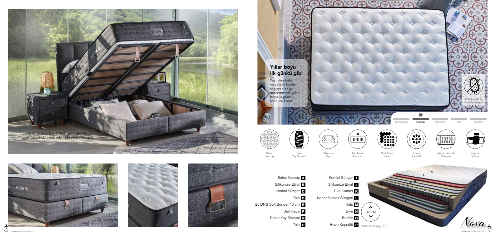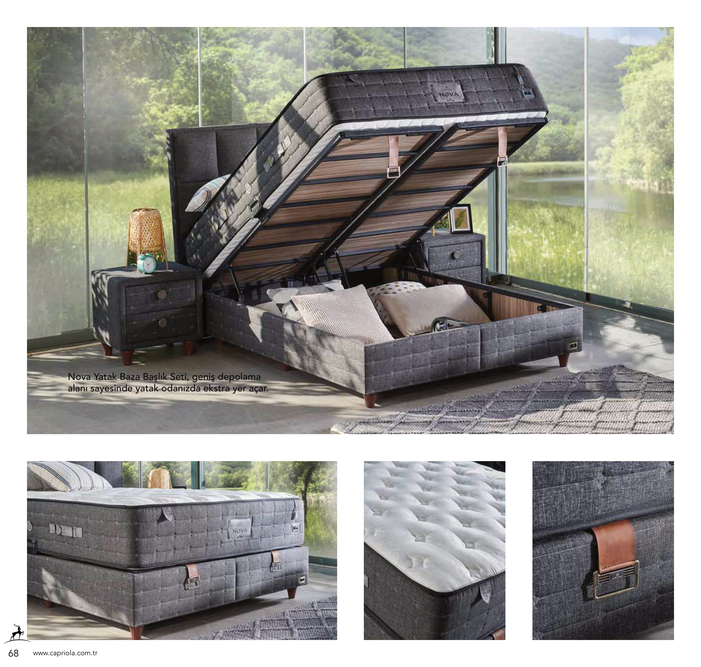 Nova Yatak Baza Başlık Seti, geniş depolama alanı sayesinde yatak odanızda ekstra yer açar.