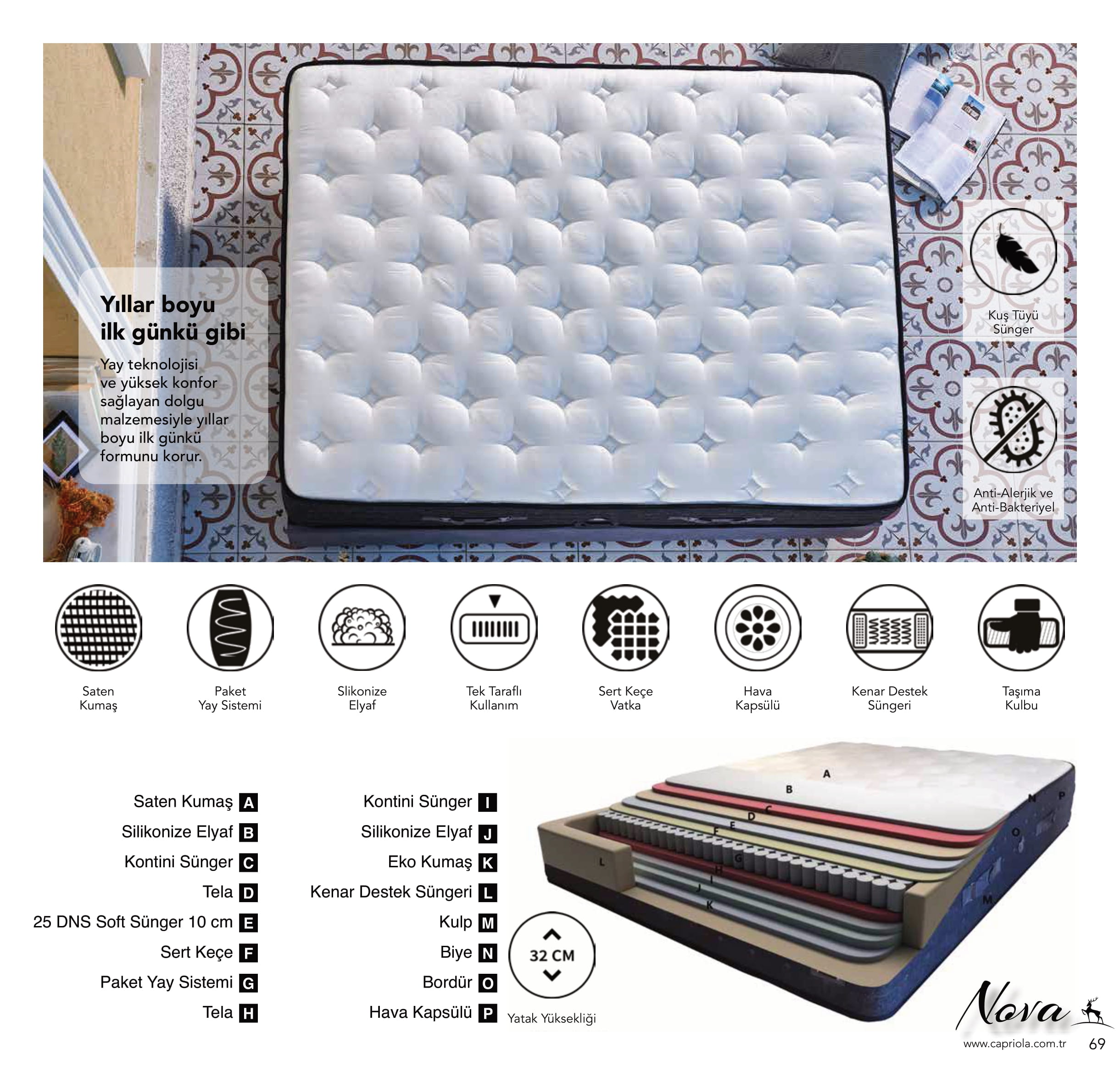 Yay teknolojisi ve yüksek konfor sağlayan dolgu malzemesiyle yıllar boyu ilk günkü formunu korur.